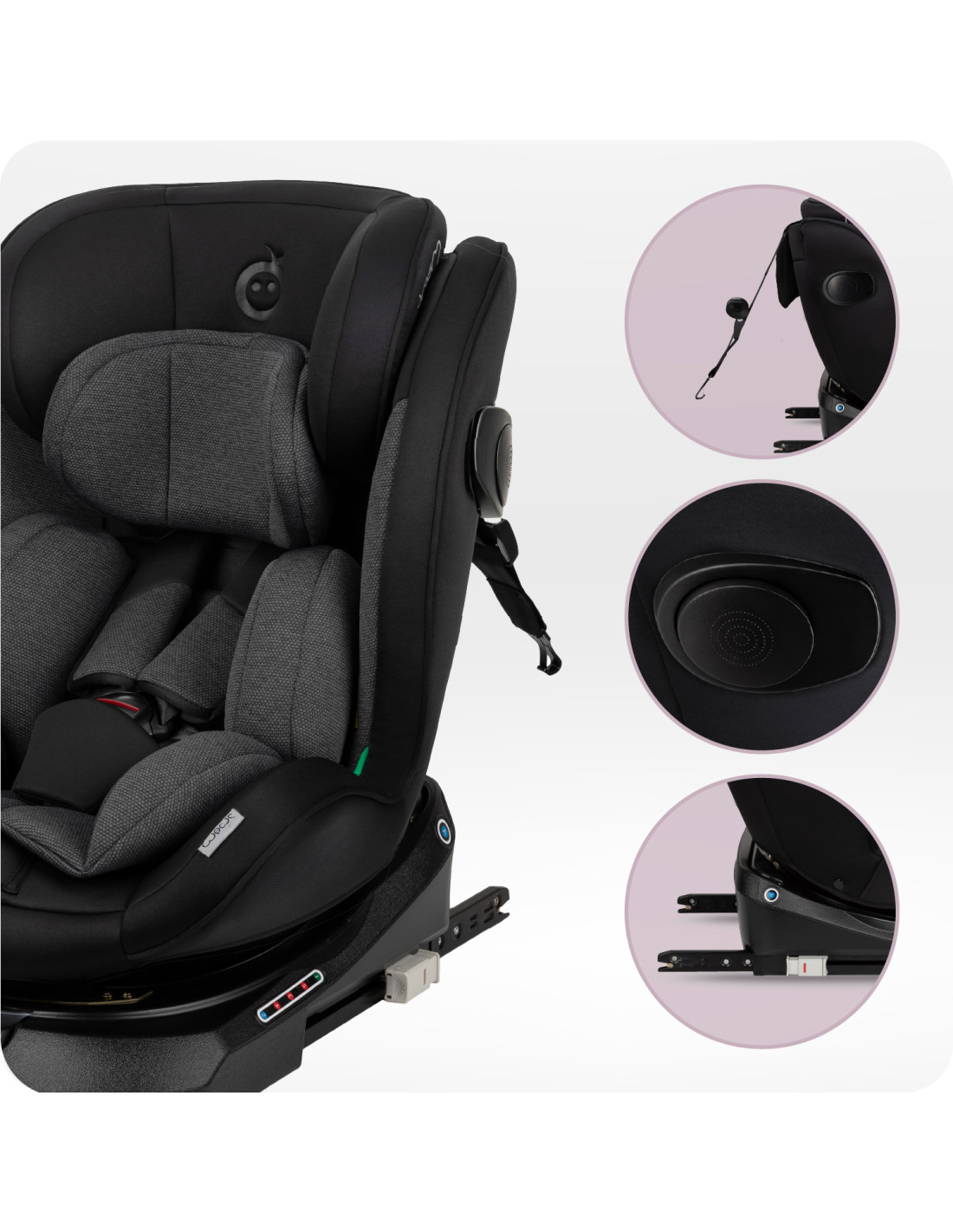 Der Autositz MoMi EMI verfügt über einen 360⁰-drehbaren Sockel, der es ermöglicht, das Kind sowohl rückwärts- (RWF) als auch vorwärtsgerichtet (FWF) zu transportieren und erhöht wesentlich den Komfort der Eltern beim Hereinsetzen und Herausnehmen des Kindes. Es lohnt sich, daran zu denken, dass die Rückwärtsposition die sicherste für das Kind ist. Der Autositz MoMi EMI ermöglicht es, ein Kleinkind bis zu einer Körpergröße von 105 cm auf diese Weise zu befördern. |