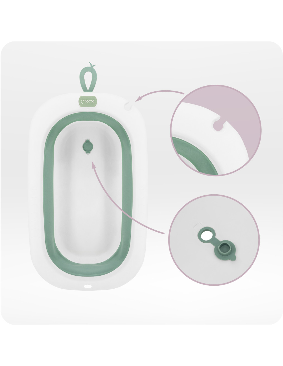 MoMi NATA is a practical and safe bathtub suitable for your newborn's firth bath adventures. The white colour with delicate green finishes perfectly fits into the interior of any modern bathroom.