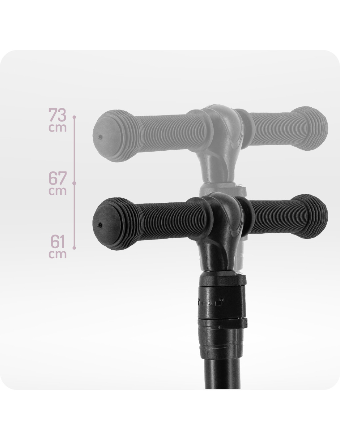 The three-level adjustable handlebars can be raised or lowered to match your child’s height. .