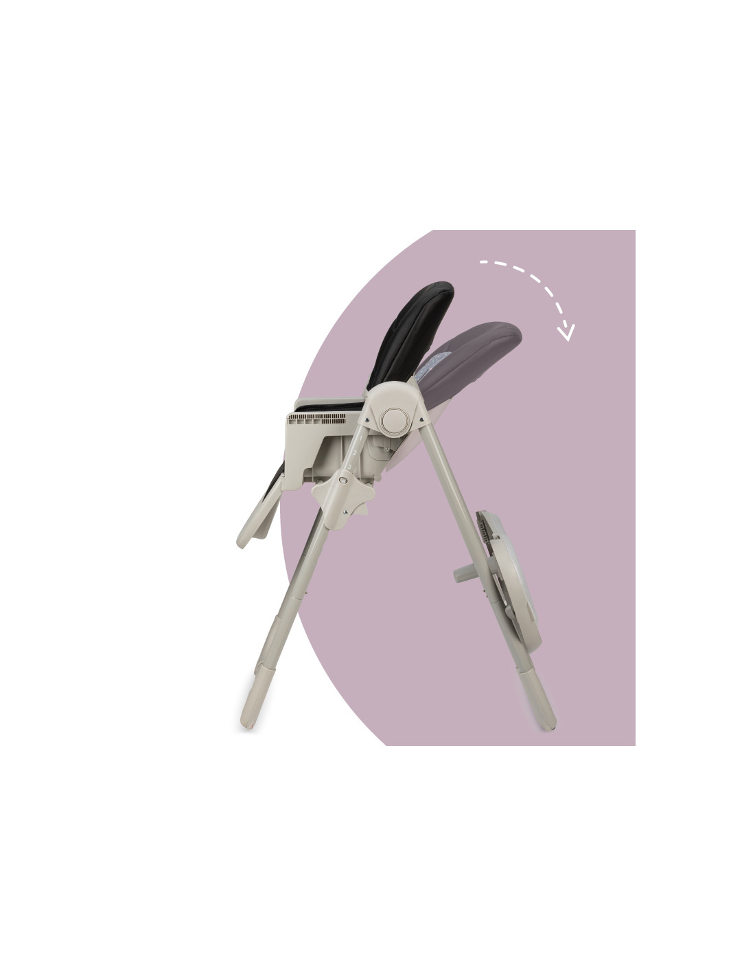 Product features: • double tray with space for a cup • outer tray is dishwasher safe • 2 tray positions • 5-point safety straps • tool-free assembly • compact size when folded • 2 wheels in rear legs • 7-position height adjustment • eco leather overlay and additional color insert • 3-stage backrest adjustment • special tray holder in the back legs • from 6 to 36 months of age • up to 15 kg |