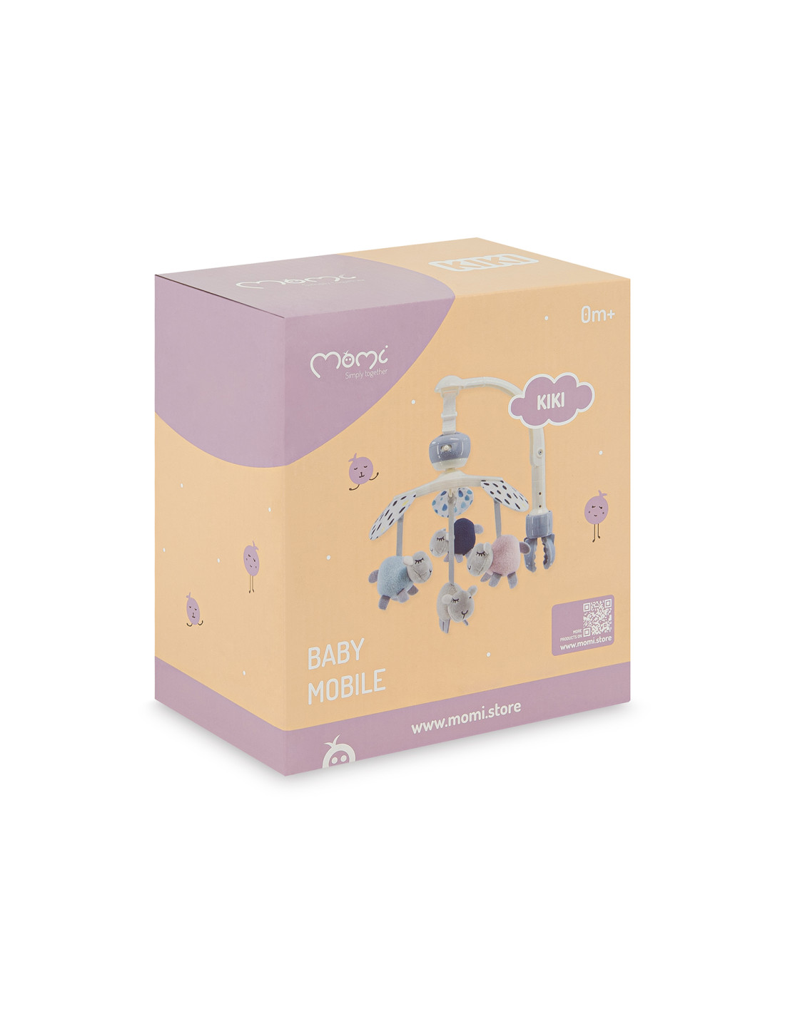 Karuzela MoMi KIKI ma stonowaną kolorystykę, która nie rozprasza uwagi dziecka. Posiada 4 sensoryczne zabawki, które można używać także oddzielnie oraz gra 6 melodii, w tym biały szum. |