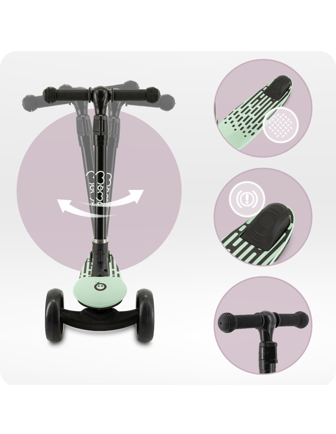 Lekka i skrętna hulajnoga MoMi WEENDY doskonale sprawdza się jako pierwszy pojazd dla dziecka. Balansowanie na niej jest łatwe i nie wymaga dużo siły. Świecące koła nadają natomiast pojazdowi wyjątkowego charakteru.