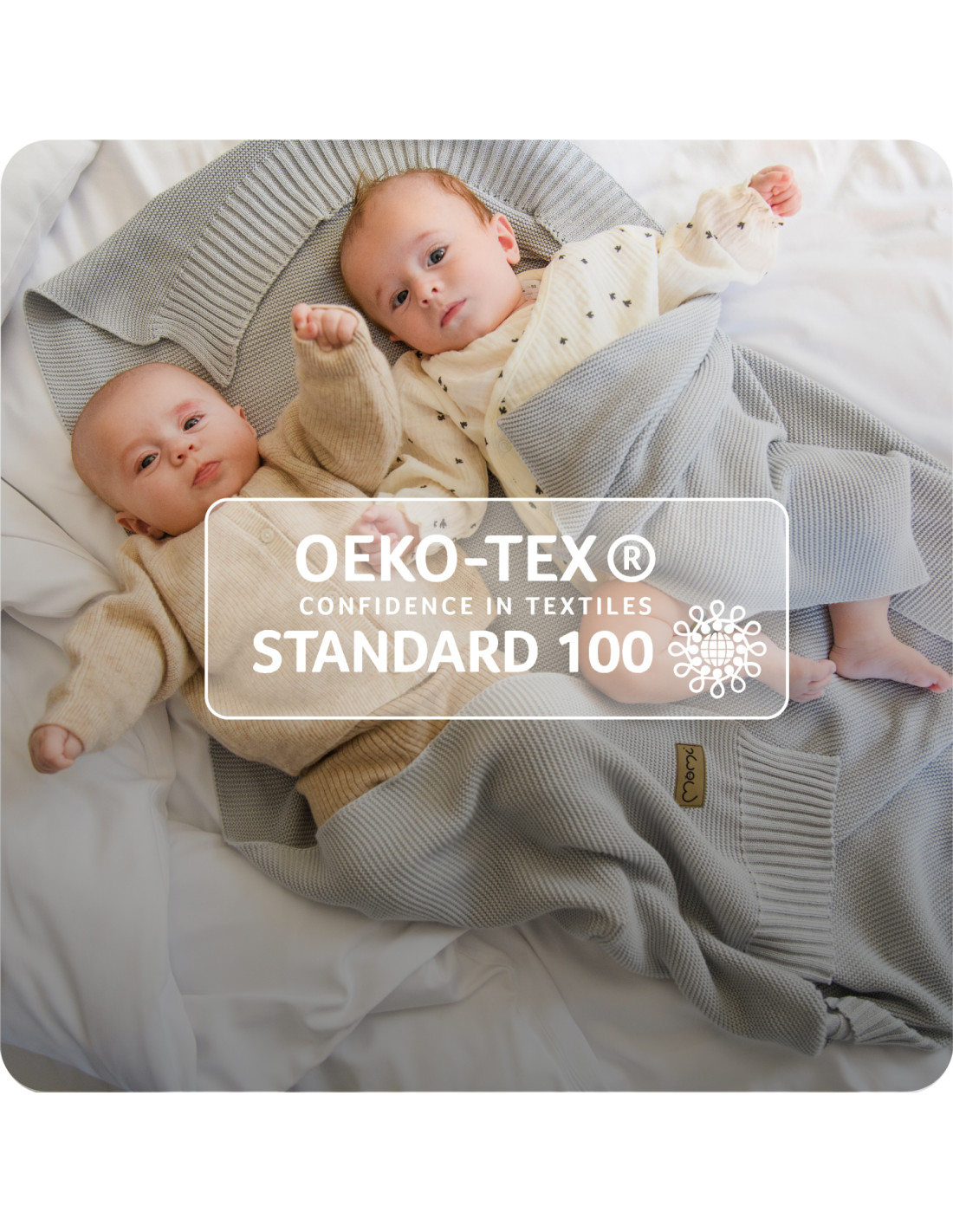 Kocyk MoMi HUG został w całości zaprojektowany i wyprodukowany w Polsce, zapewniając najwyższą jakość wykonania i bezpieczeństwo dla delikatnej skóry dziecka. Tkanina, z której wykonany jest kocyk posiada certyfikat OEKO TEX nr IW 00014. |